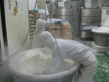 ・仕込み(小麦粉、塩、水などを機械に投入)